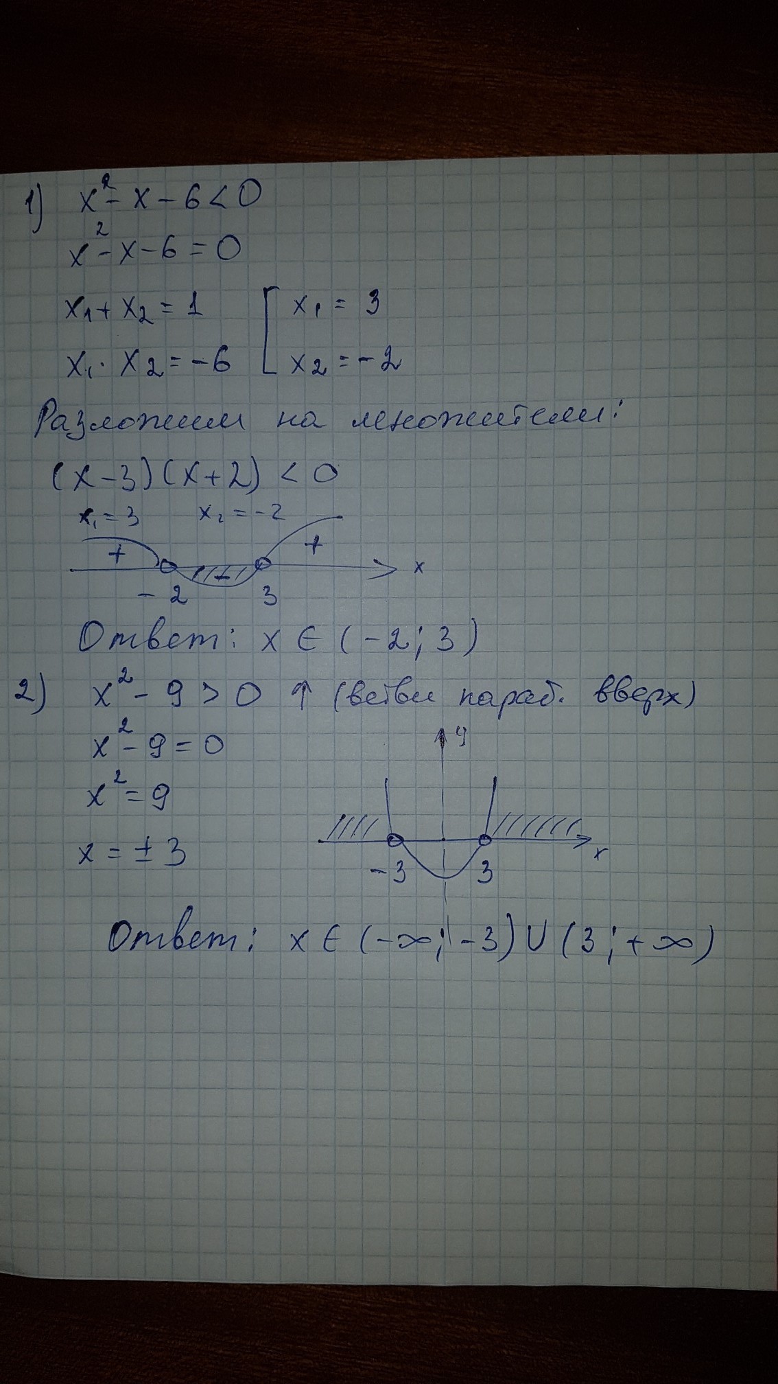 1) х^2-х-6<0 - методом разложения на линейные множители