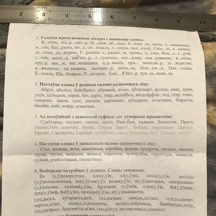 2. Абруса, абеліска, бейсбаліста, абранніка, атлета, аўтаспорту, вугалю, квасу, грому, унука, адэкалону, змроку, бегу, адраса, твару, валейбола, віндсёрфінга, года, літра, тэніса, снежня, закону, густу, амоніма, адрэналіну, аўтадрома, атлетызму, біярытму, басейна, аўса, кефіру, агеньчыка