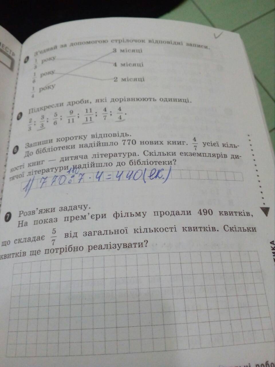 1) 1-5/7=7/7-5/7=2/7 всех билетов надо еще реализовать