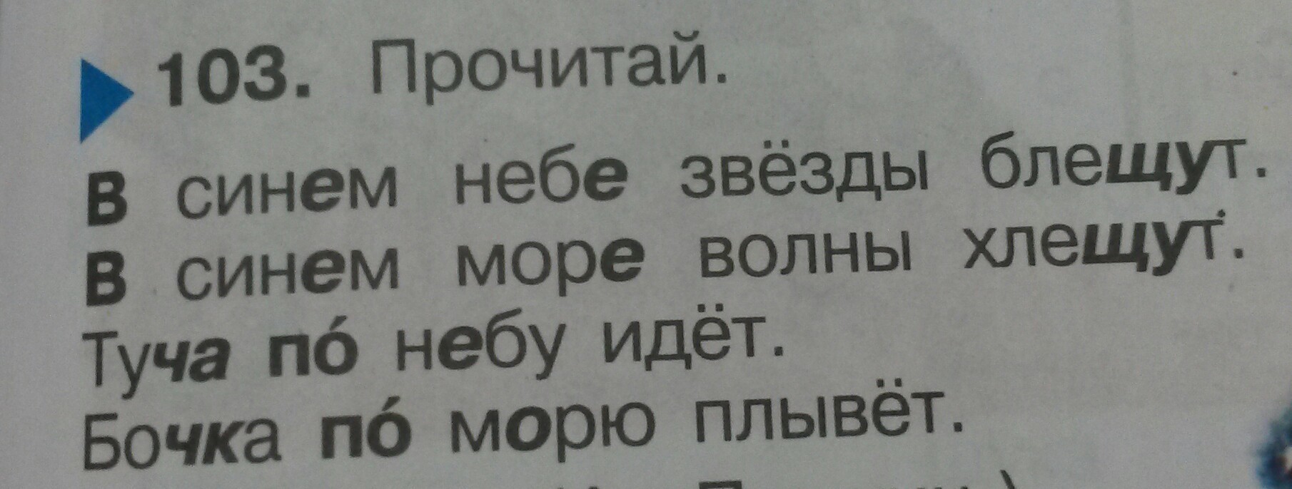 В синем море звёзды (подлежащее, подчеркнуть одной чертой) блещут (сказуемое, подчеркнуть двумя чертами).