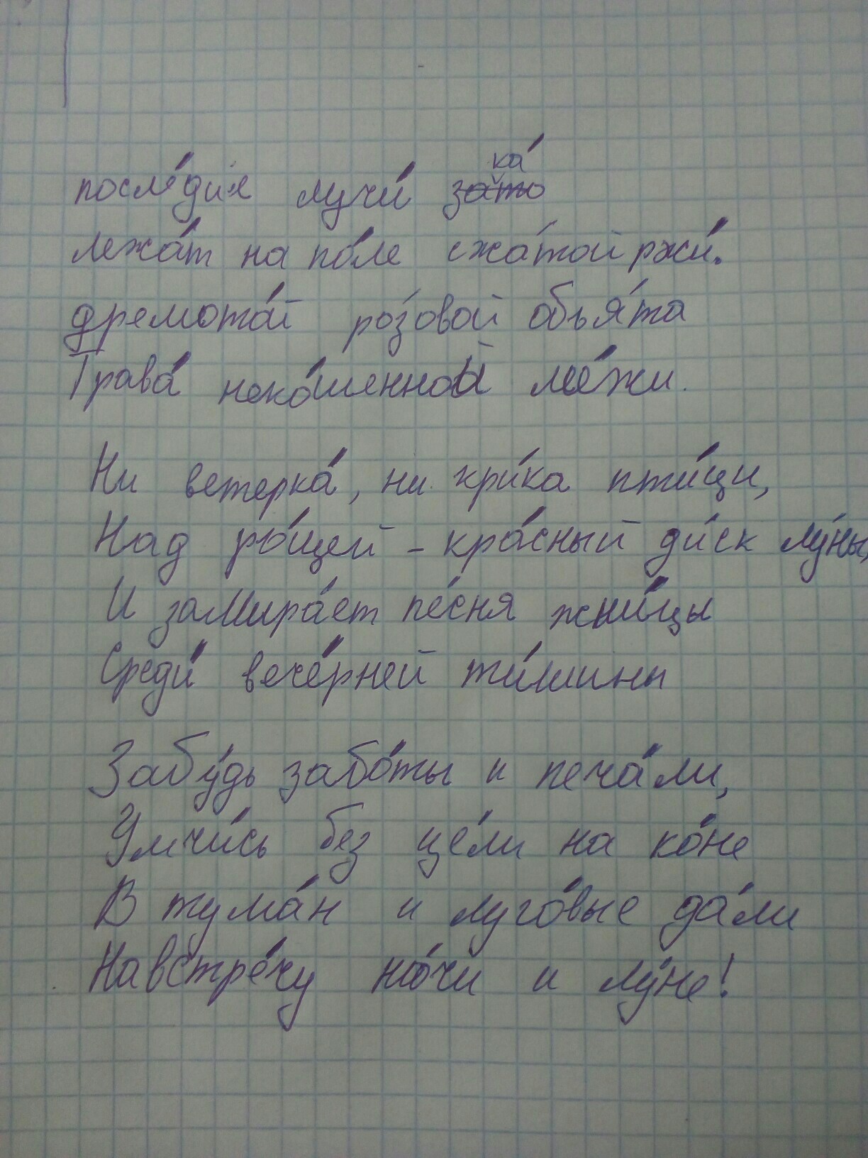 Пожалуйста напишите каждое слово под ударением (не знаю я ударения в этом стихе) стих ,,Летний вечер ,, Александр Блок