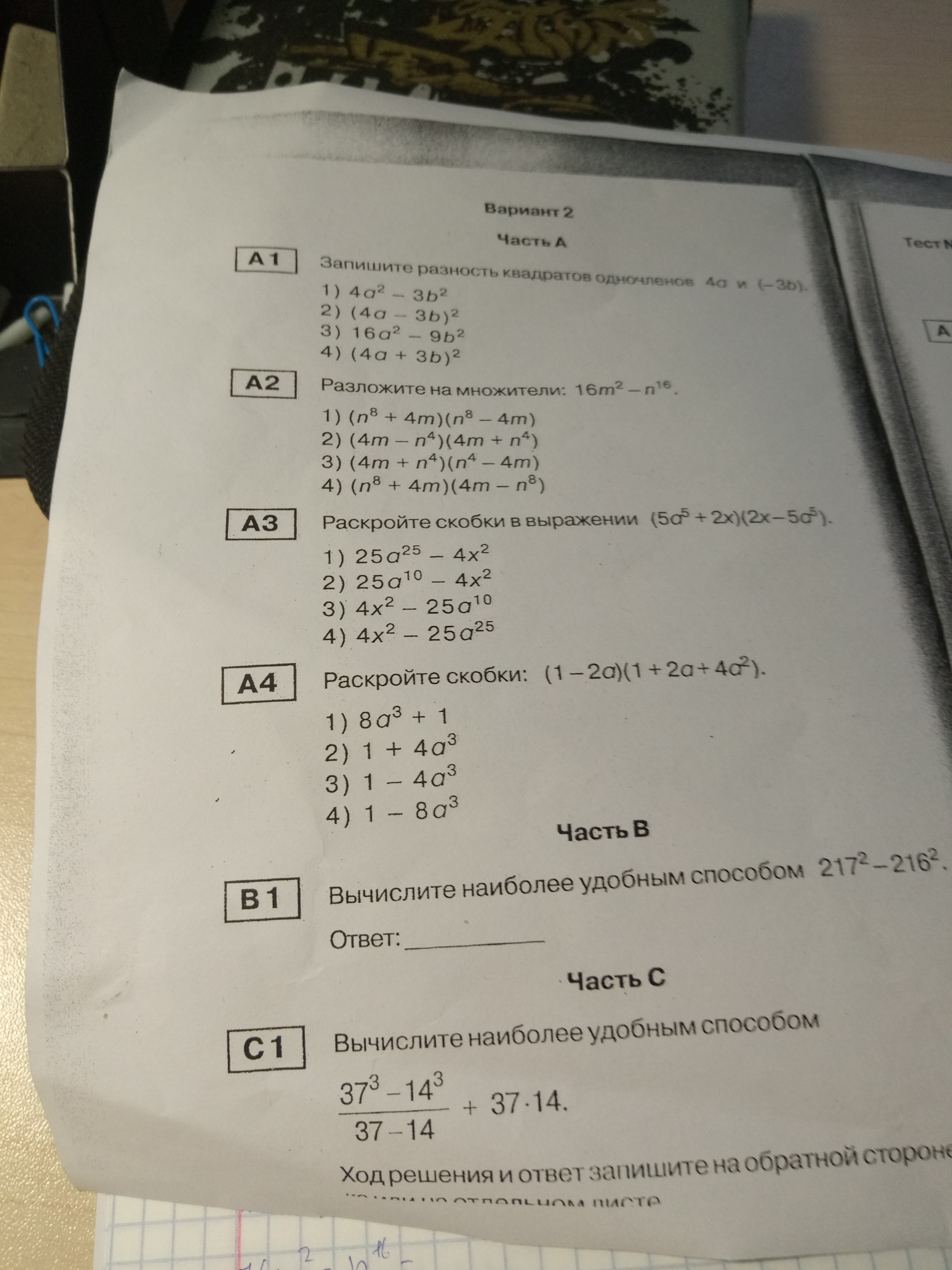 В1.217²-216²=(217-216)(217+216)=1×433=433