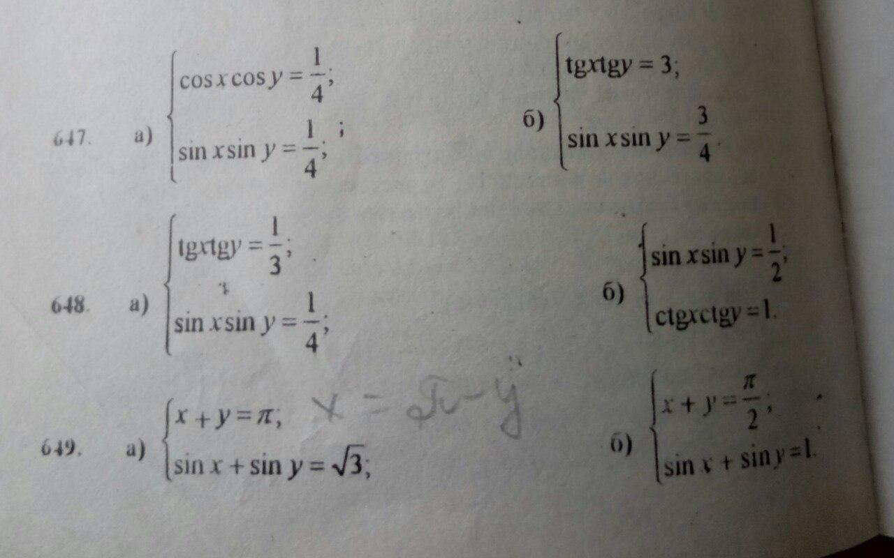 {cosxcosy +sinxsiny =1/4 + 3/4. {cos(x-y) =1. { x-y =2πl ,l ∈ ℤ
