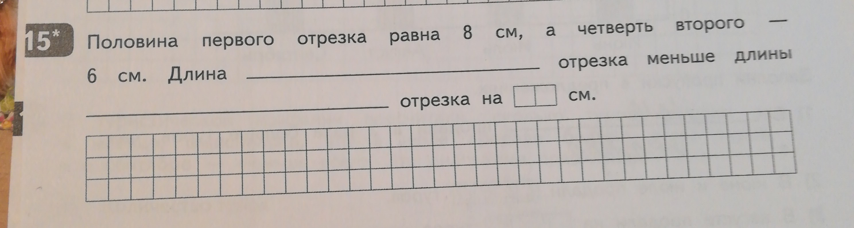 Длина первого отрезка меньше длины второго отрезка на 8 см
