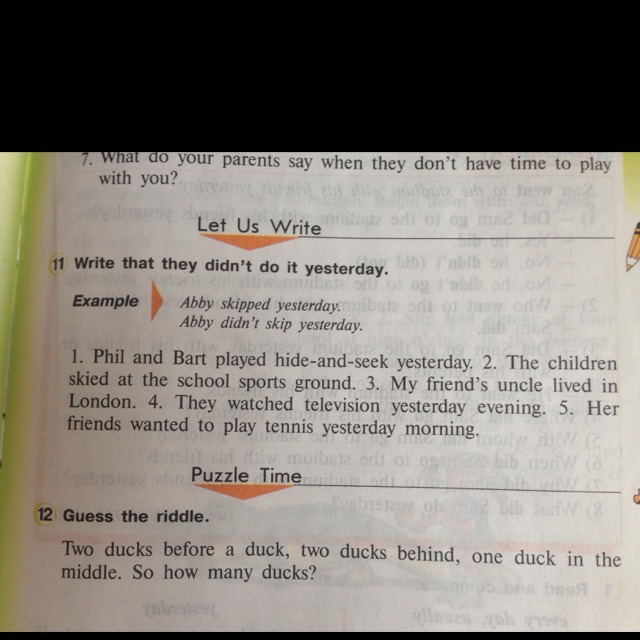 Phil and Bart didn't play hide-and-seek yesterday.The children didn't ski at the school sports ground.My friend's uncle didn't live in London.They didn't watch television yesterday evening.Her friends didn't want to play tennis yesterday morning.