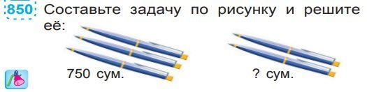 Три ручки стоят 750 сум. Сколько стоят две ручки?