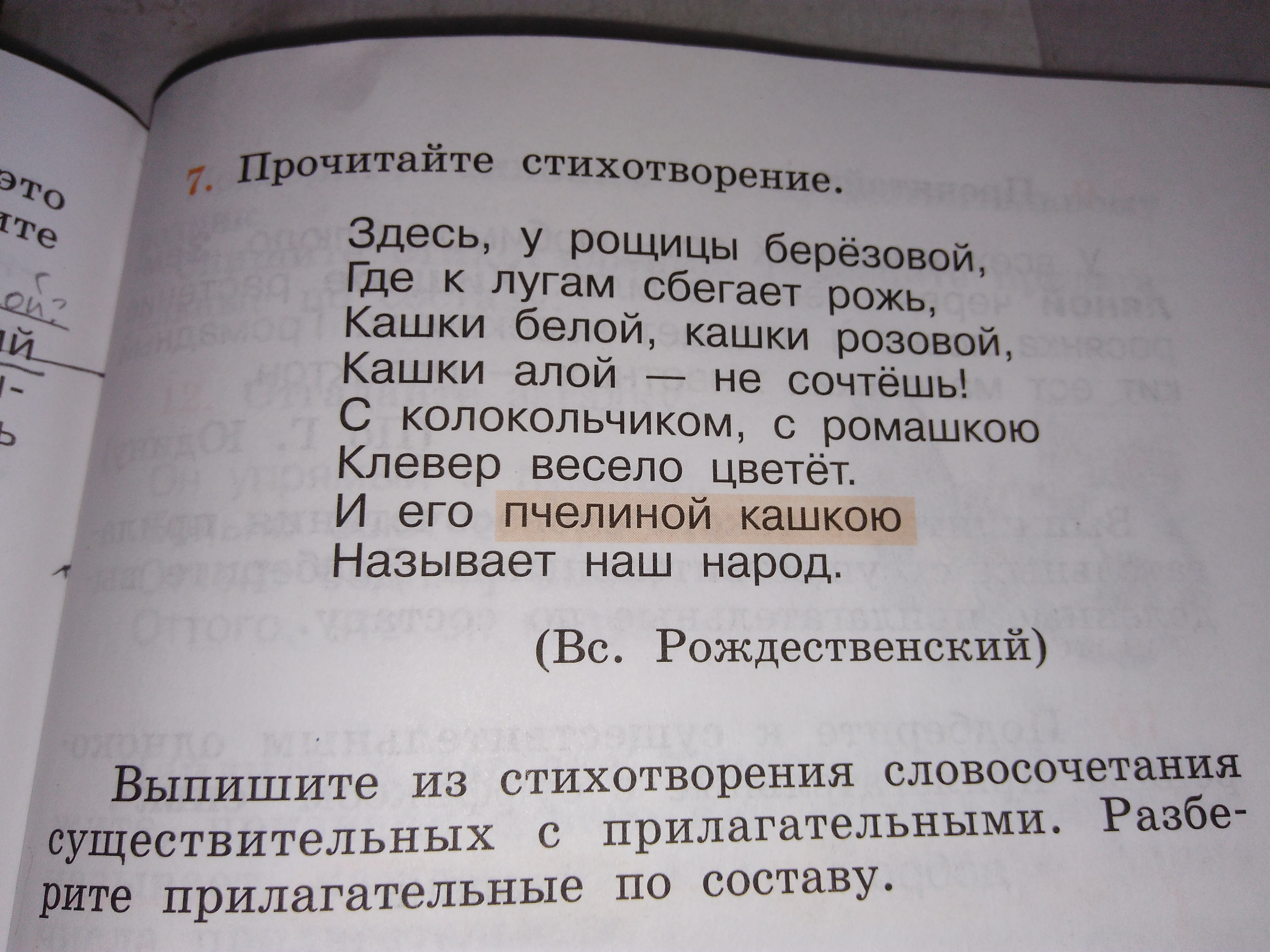 У рощицы берёзовой, кашки белой, кашки розовой, кашки алой, пчелиной кашкою