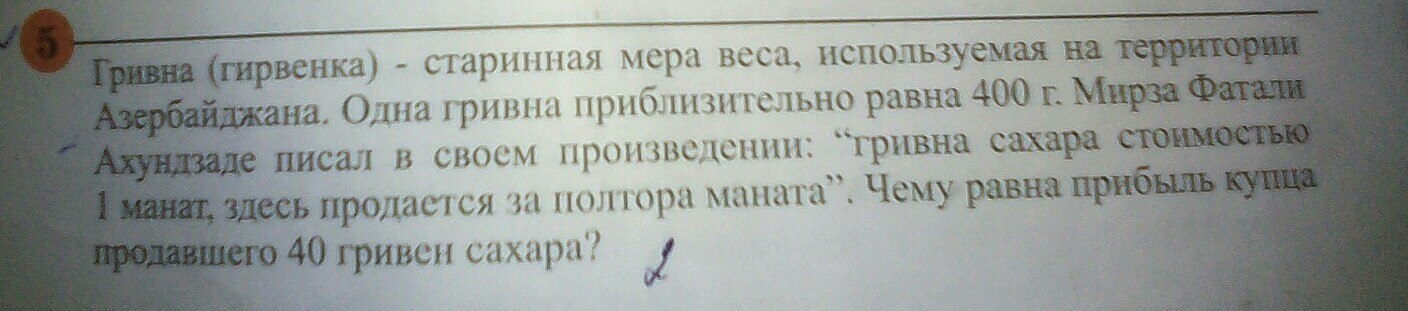 0,5х40=20 манат - прибыль с 40 гривен
