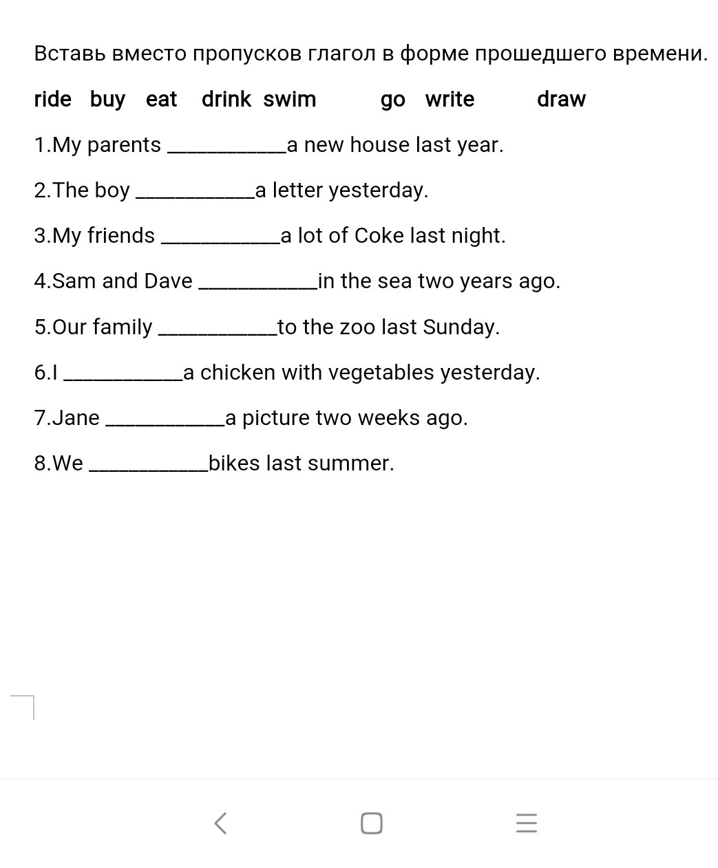 7)Jane drew a picture two weeks ago.