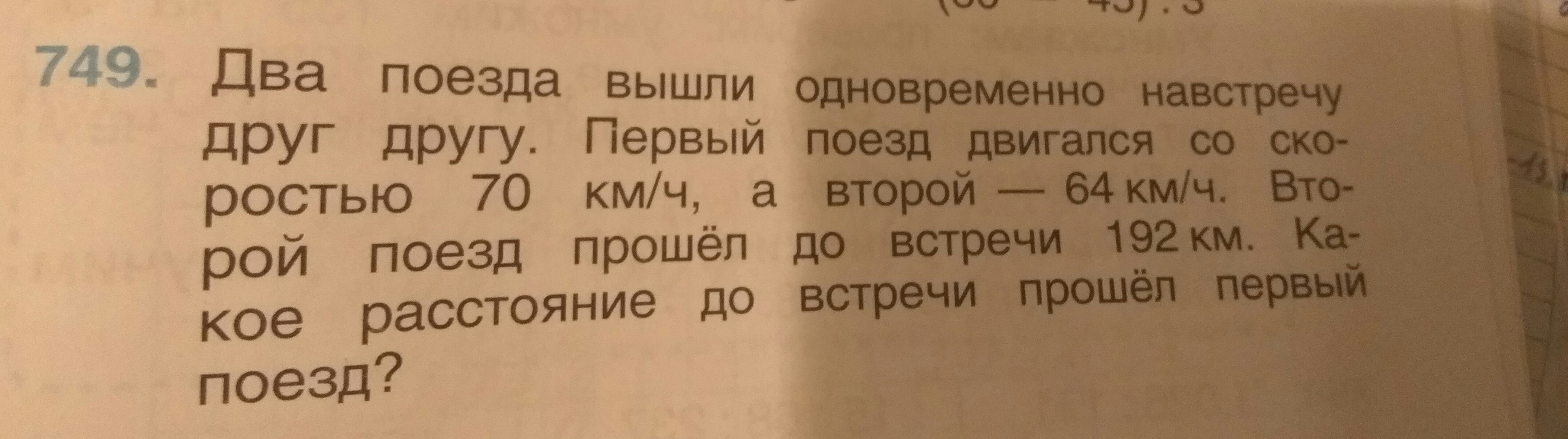 1) 192:64=3 часа поезда были в пути 2) 70*3=210(км) прошел 1 поезд Ответ: До встречи 1 поезд прошел 210(км)