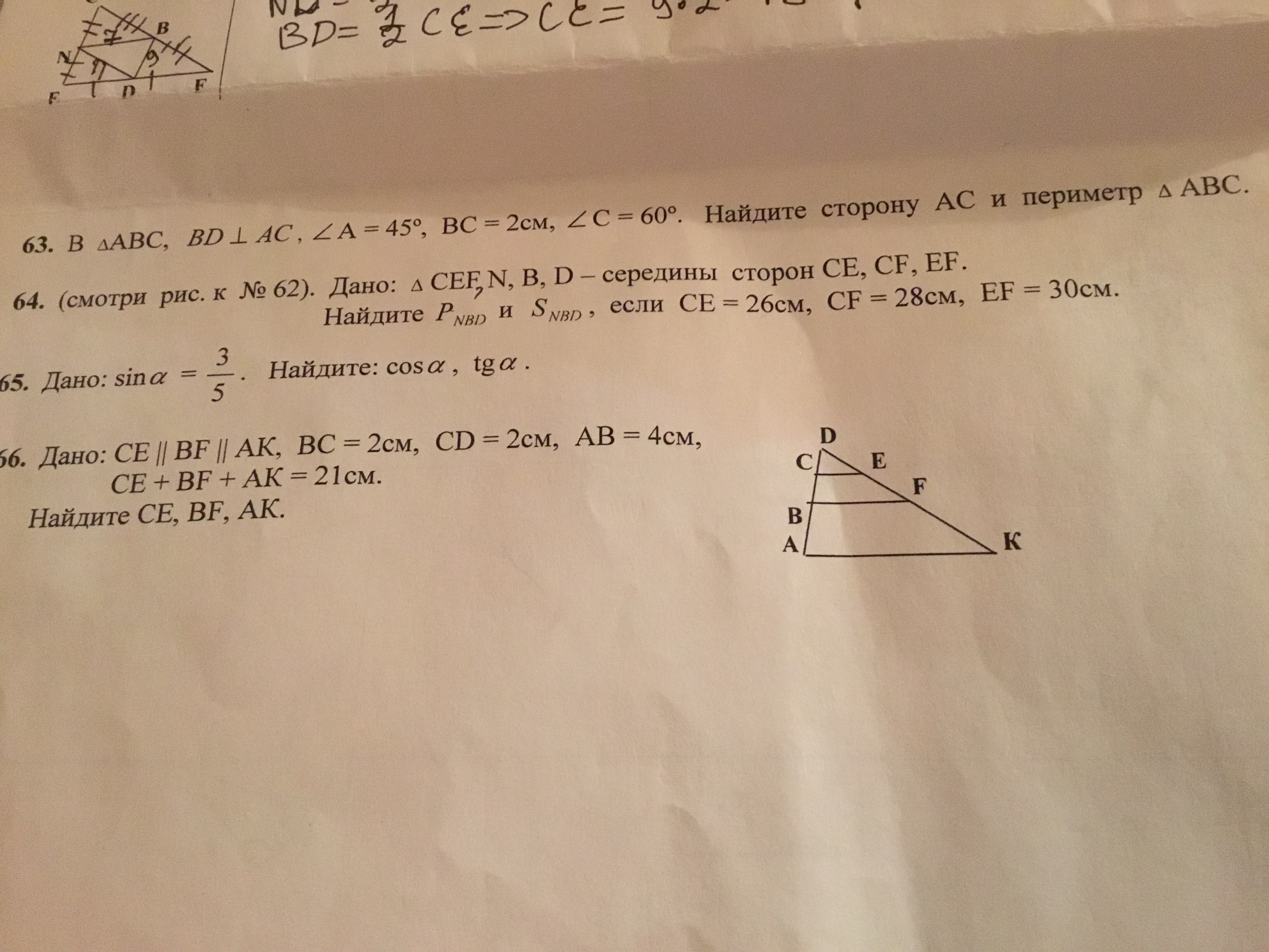 BD=0,5CE=13 см