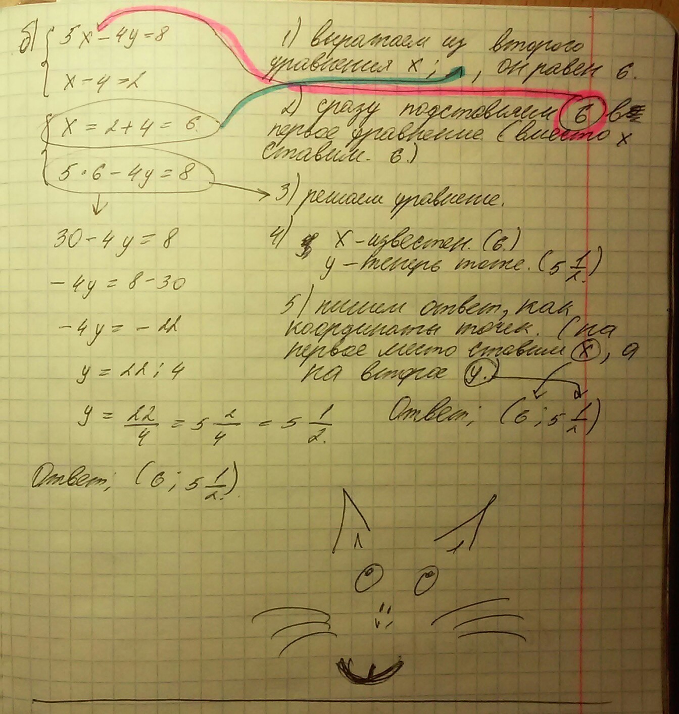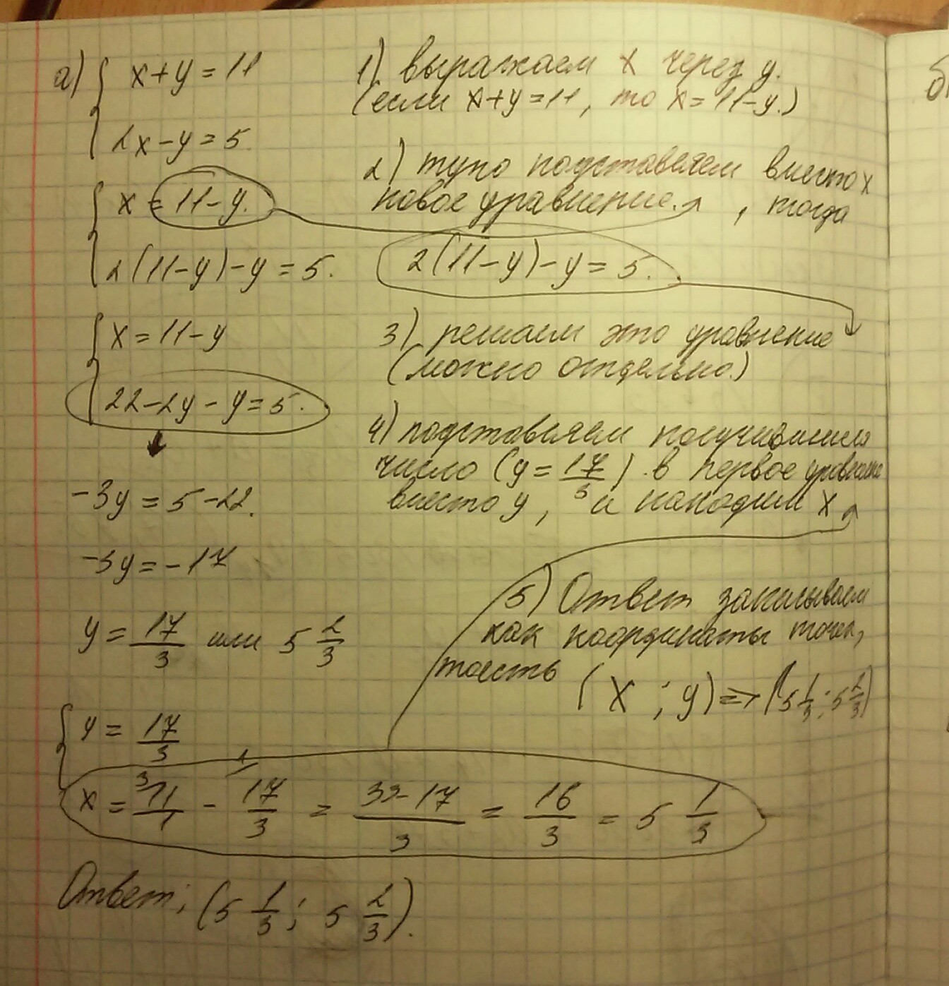 расскажите, как решают систему методом подставки