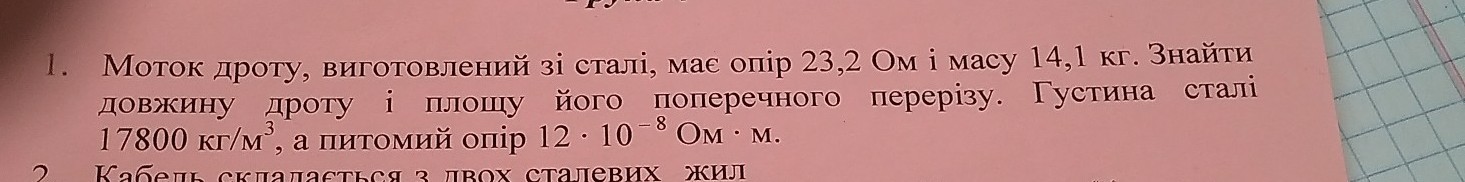 R=p*L/S сопротивление= питомий опір * длину провода/ площадь сечения
