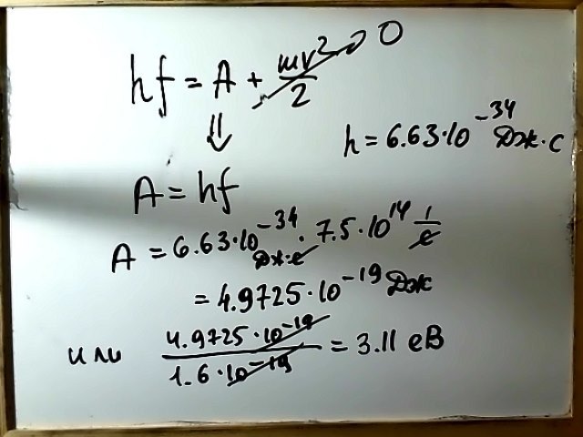Вычеслите работу выхода электрона из металла если при его облучений фотоэффект наблюдается начиная с частоты 7.5*10∧14
