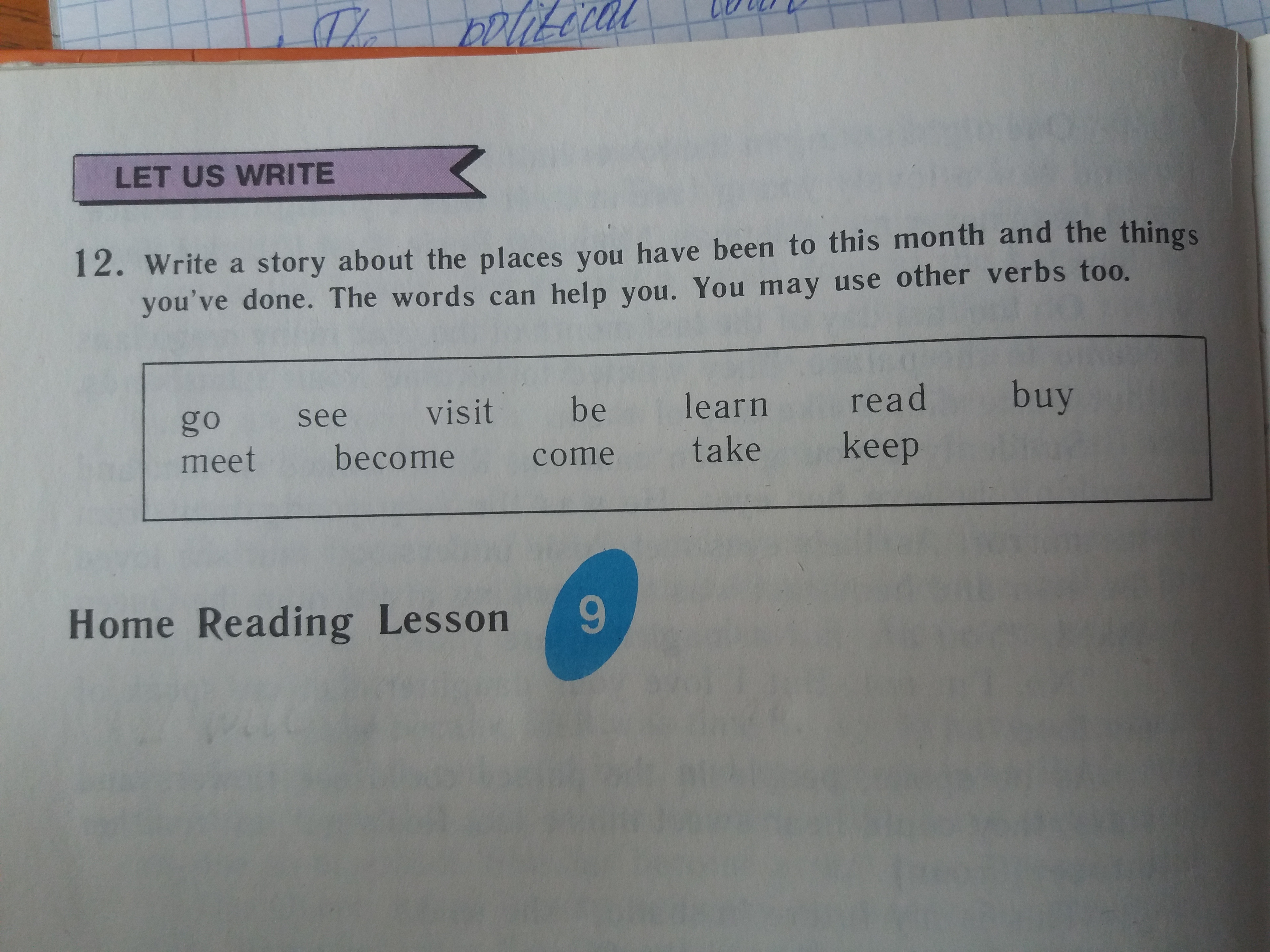 Write about the places you have been to this month and the things you've done. The words can halp you.слова go see visit be learn read bay meet become come take keep