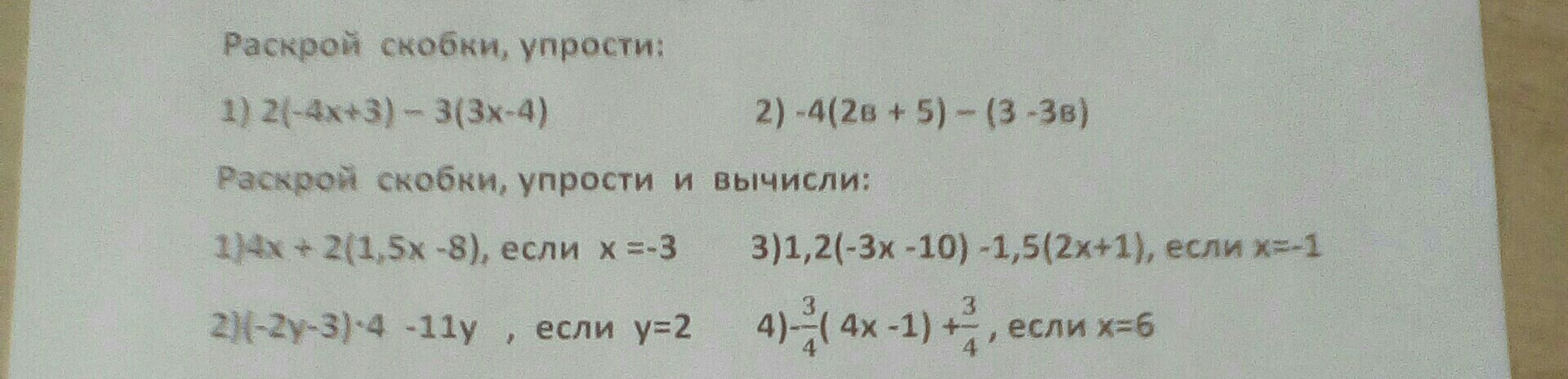 1)2(-4х+3)-3(3х-4)=-8х+6-9х+12=18-17х
