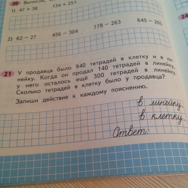 1) 300 + 140 = 440 тетрадей в линейку