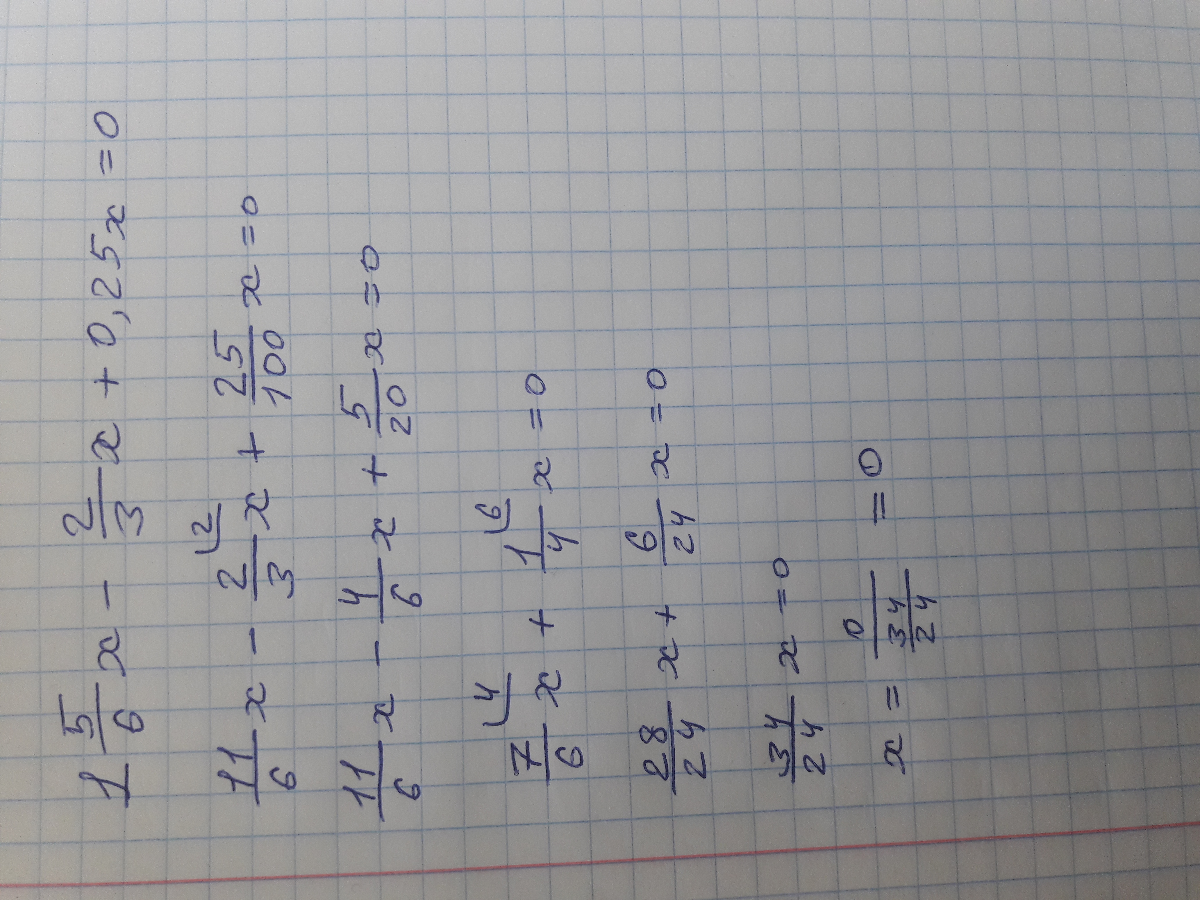 1 5/6x-2/3x+0,25x=1 1/6x+0,25x=1 1/6x+25/100x=1 5/12x