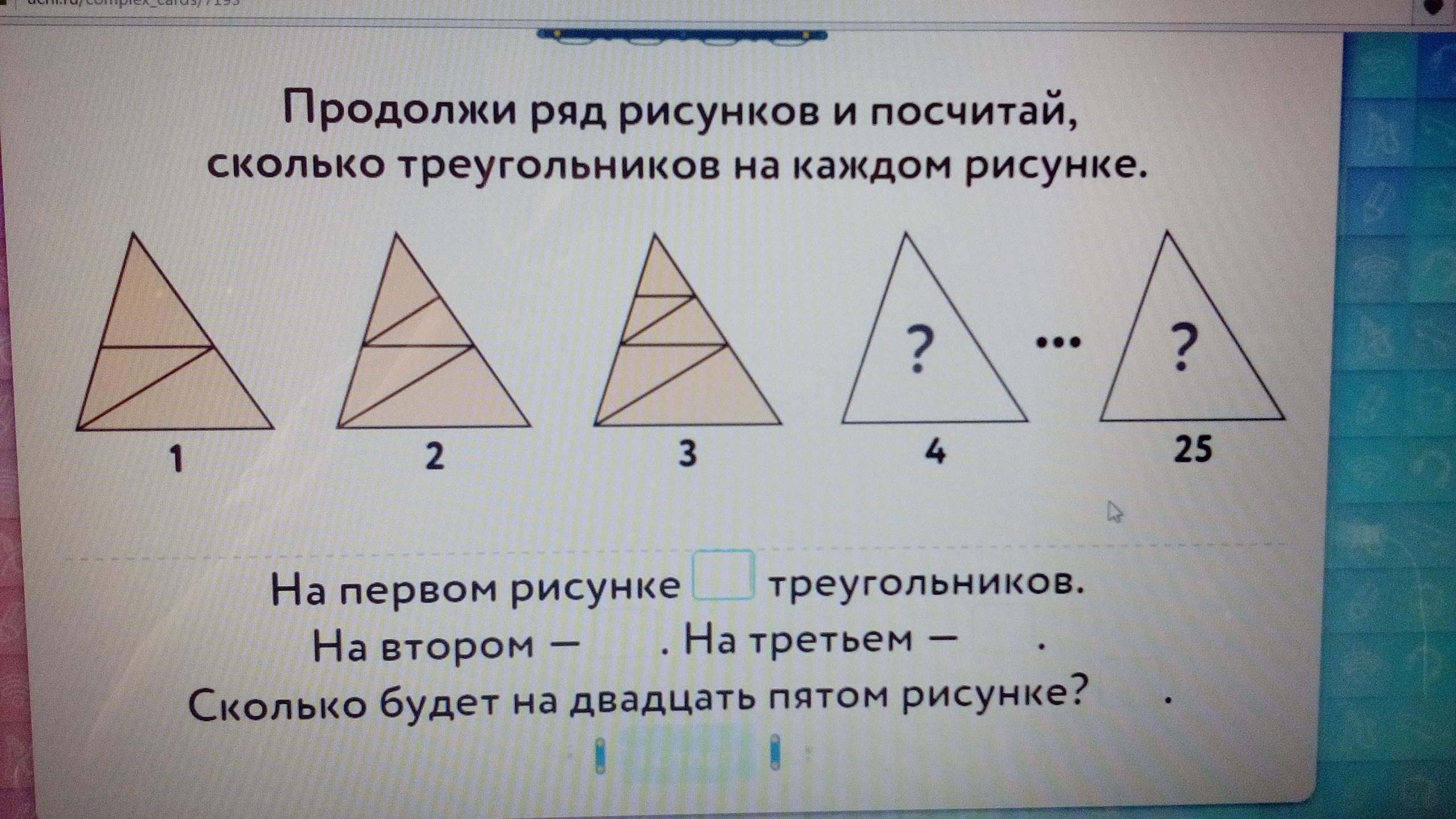На 25ом рисунке будет 27 треугольников! (Решение прилагается)