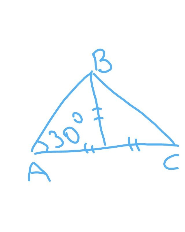 угол С равен 30, т к треугольник равнобедренный, а угол АВС равен 180 (сумма всех углов в треугольнике) -(30+30)= 120