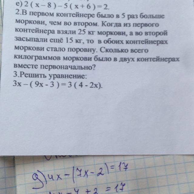2) Пусть во втором контейнере моркови было х кг, тогда в первом - 5х кг