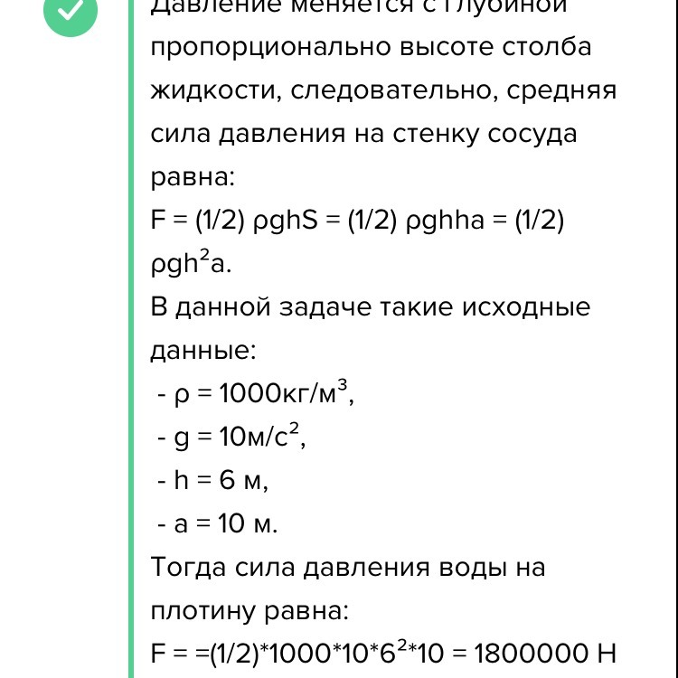 Канал шириною 10 м і глибиною 6 м заповнено аодою й перегороджено греблею. З якою силою вода тисне на греблю