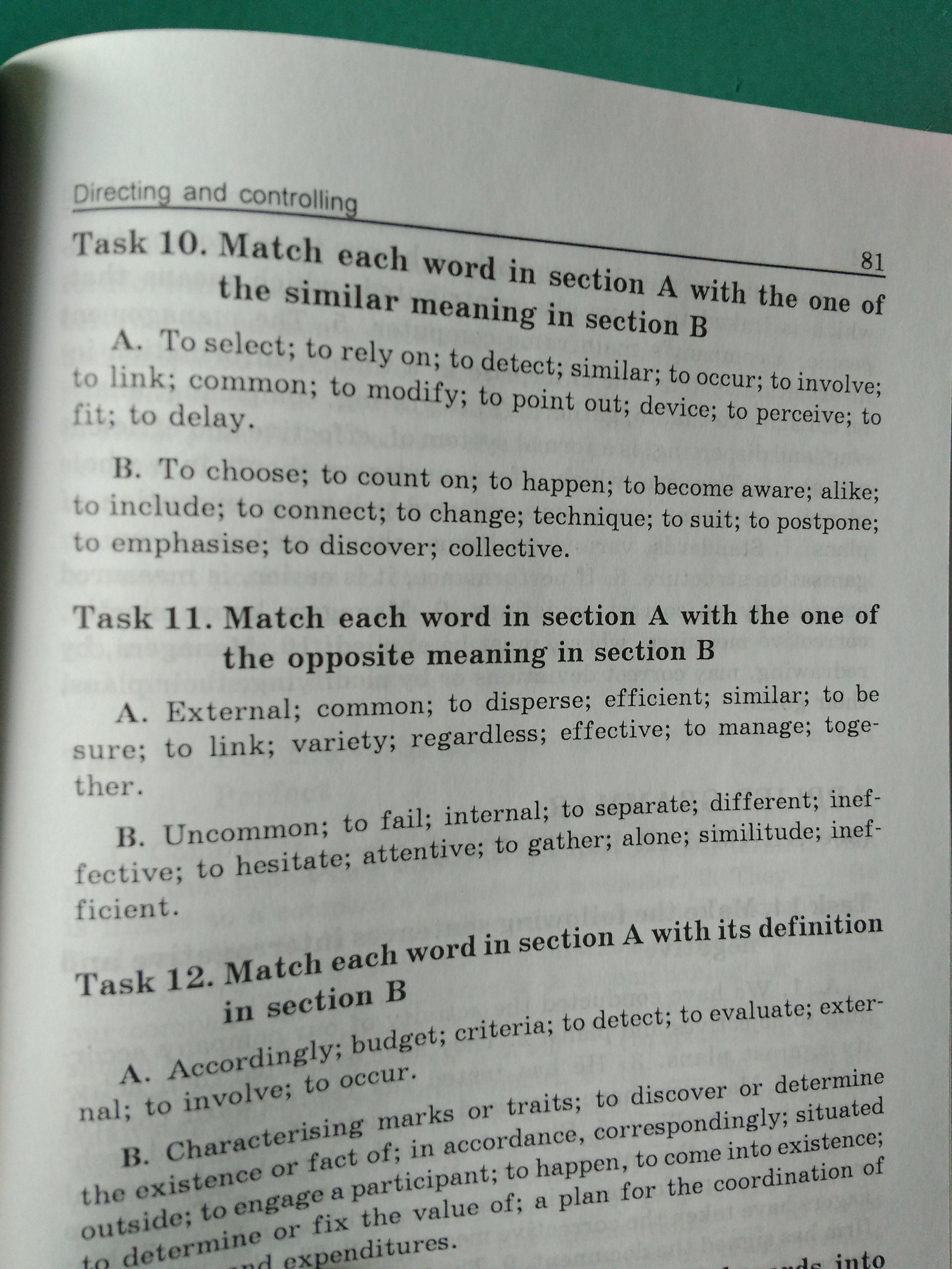 Select - choose, rely on - count on, detect - become aware, similar - alike, occur - happen, involve - include, link - connect, common - collective, modify - change, point out - emphasize, device - technique, perceive - discover, fit - suit, delay - postpone