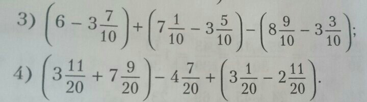 4)(3 целых 11/20 + 7 целых 9/20) - 4 целых 7/20 + (3 целых 1/20 - 2 целых 11/20)