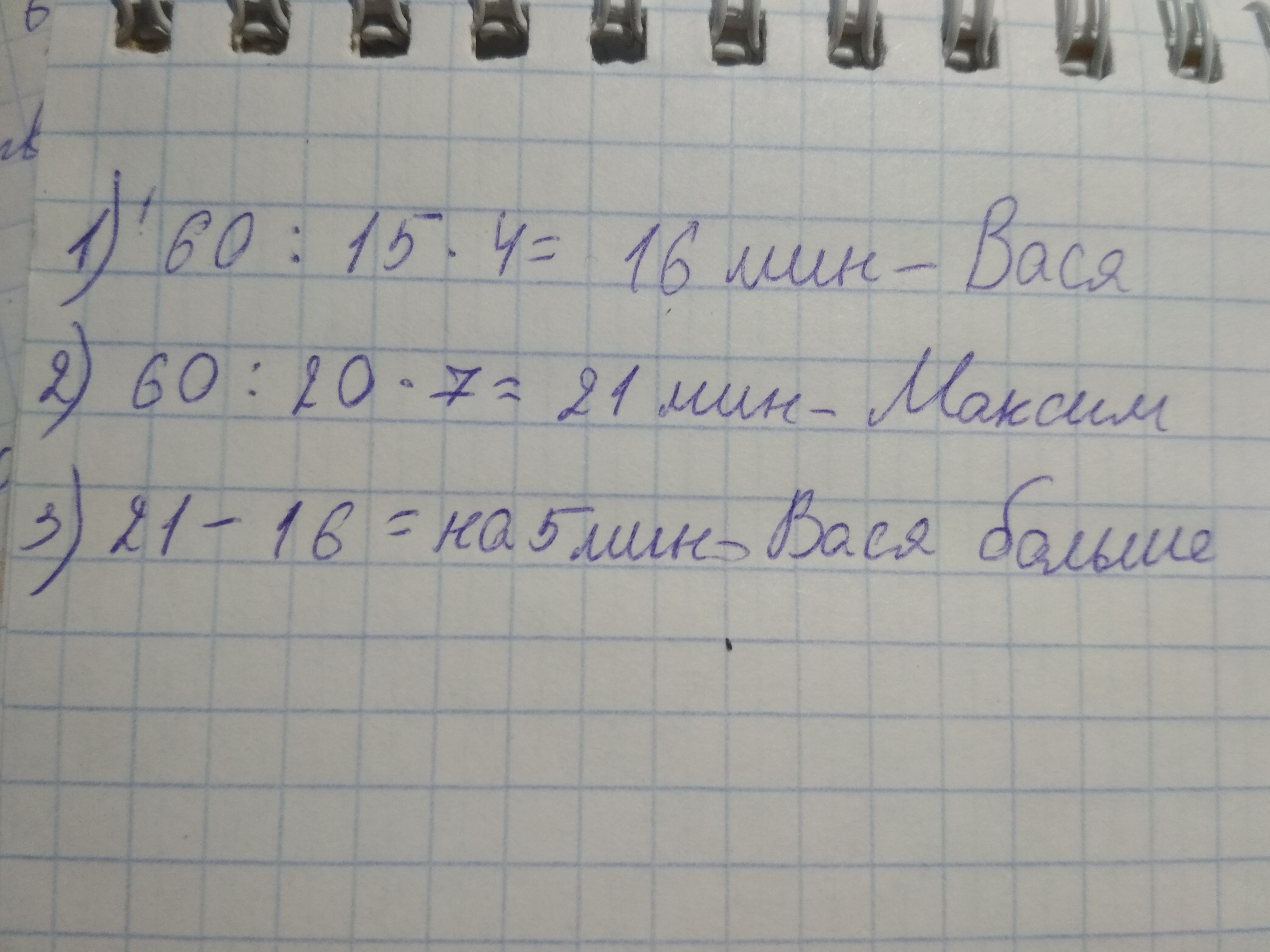 найдем на сколько Вася оказался быстрее Максима (16 мин < 21 мин)
