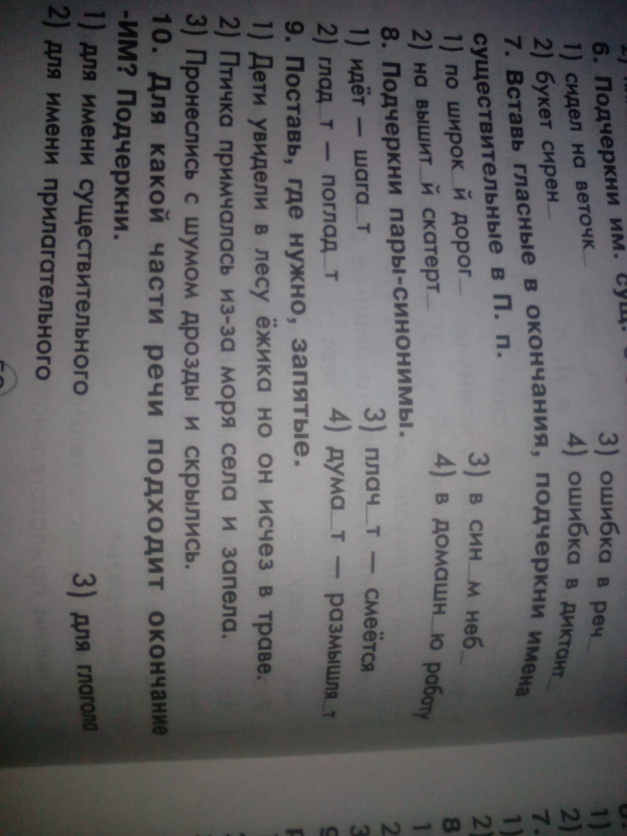 7. 1- о,е 2-о,и 3-е,е 4-ю. подчеркни