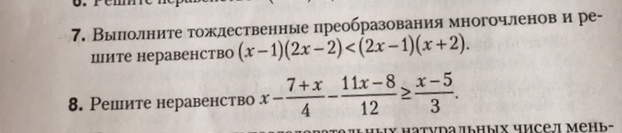 8. ((12x - 3(7+x) - (11x-8) - 4(x-5))/12 ≥ 0