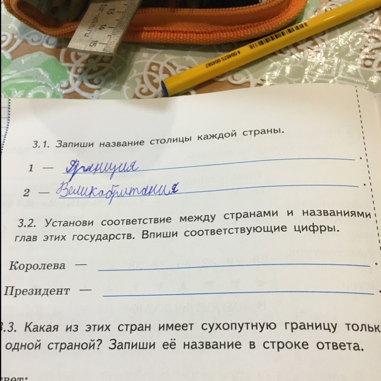 Установи соответствие между странами и названиями глав этих государств.Впиши соответствующие цифры.