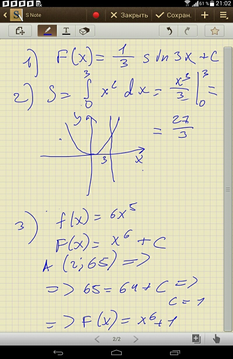 1) Укажите общий вид первообразной для функции f(x)=cos3x