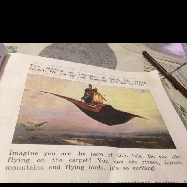 Представь,что ты являешься героем этой сказки.Ты любишь летать на ковре?Ты видишь реки,леса,горы и летающих птиц.Это так интересно!