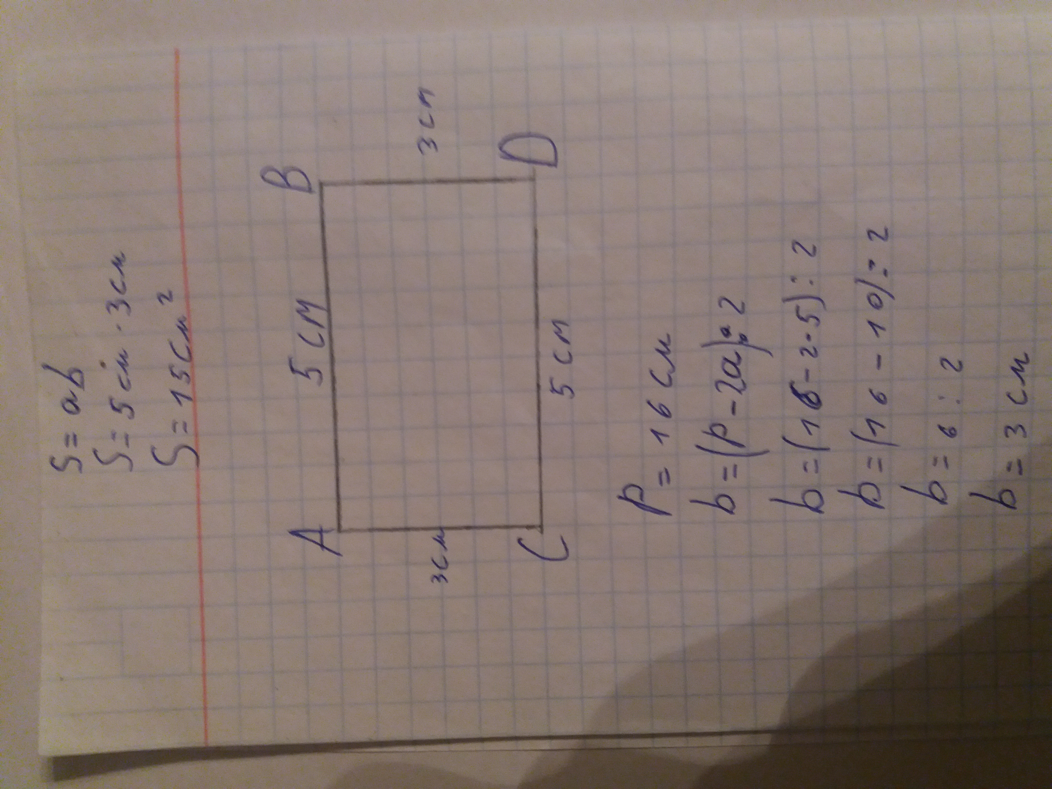начерти прямоугольник ABCD если известно что его периметр 16 см а длина 5 см Найди площадь этого прямоугольника