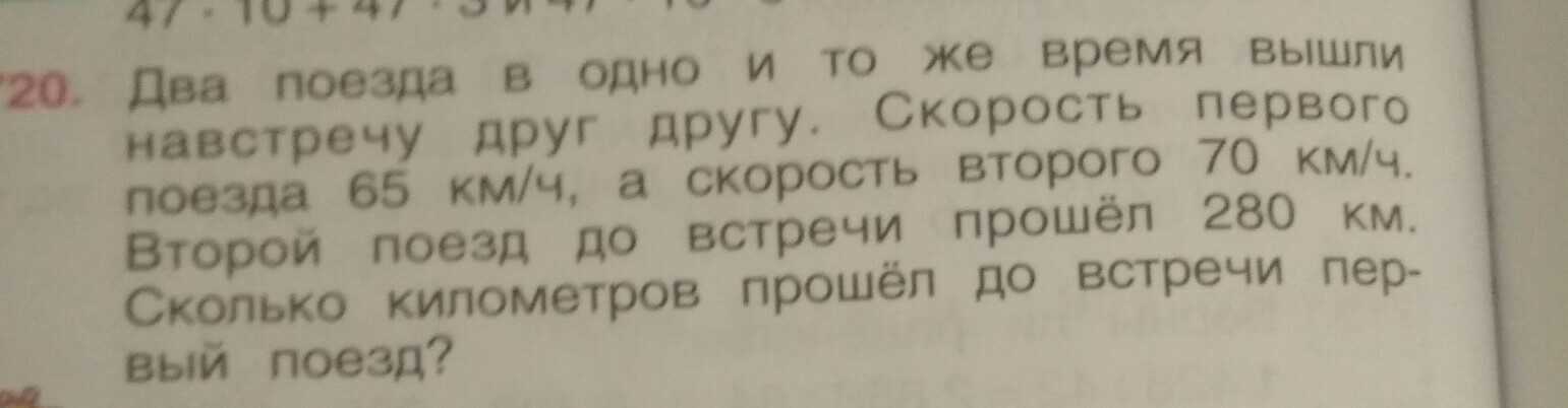 Ответ: первый поезд прошёл до встречи 260км.