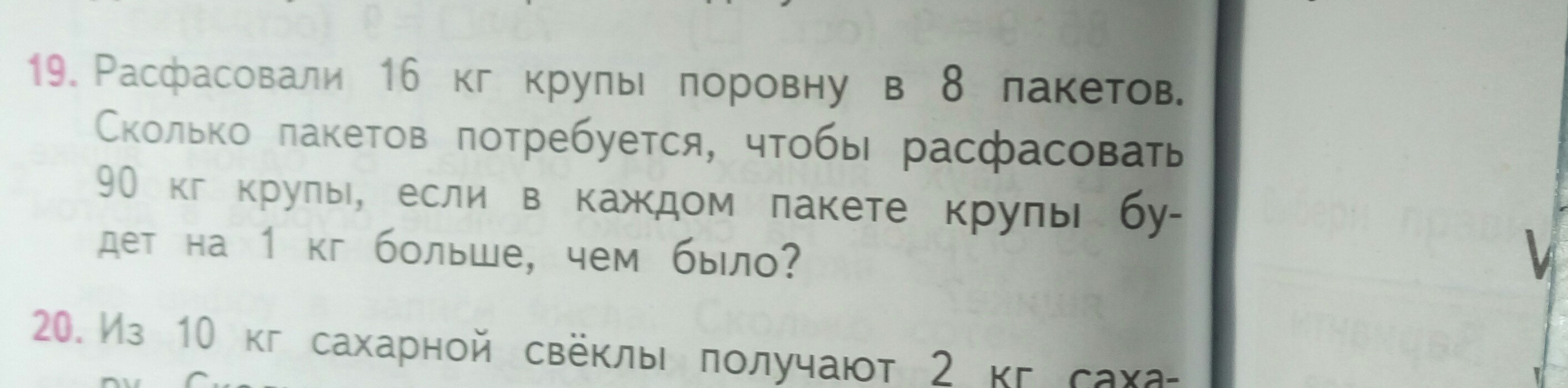 Так,значит 1.)16:8=по 2 кг в 1 пакете.2.)2+1=3 кг в пакете с добавкой.3.)90:3=30 пакетов для того чтобы расфасовать 90 кг крупы по 3 кг в каждом.