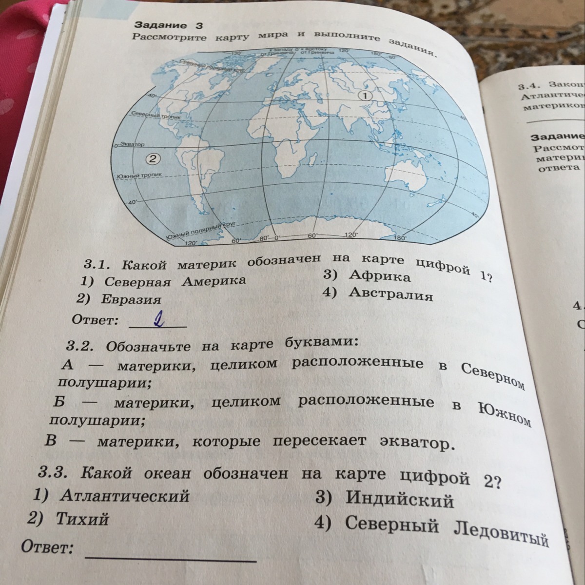 В задании написано, что нужно обозначить буквой А только ЦЕЛЫЕ материки. Тоесть: Северная Америка, Евразия