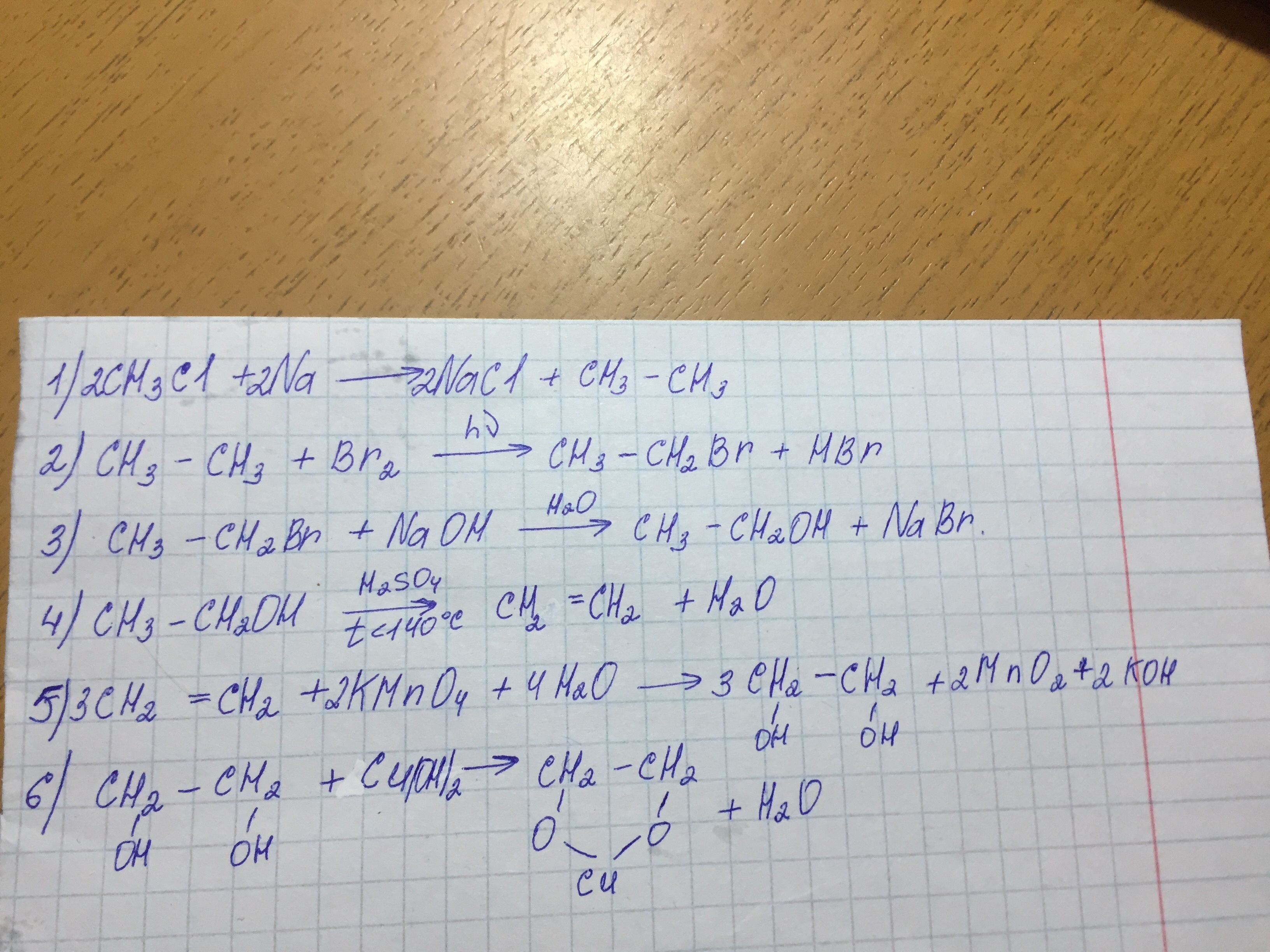 Напишите уравнения реакции при помощи которых можно осуществить следующие превращения ch3cl-c2h6-c2h5br-c2h5oh-c2h4-c2h4(oh)2- гликолят меди 2