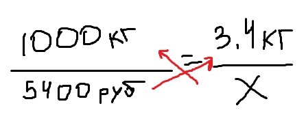 x=18.36 (руб) - 3 кг 400 г. картошки