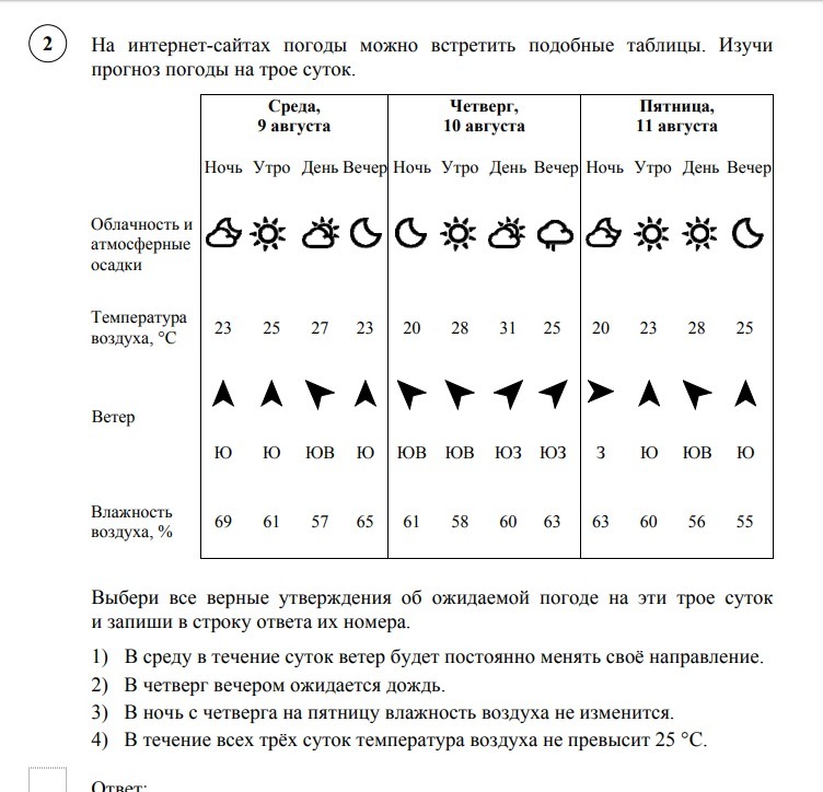 1) В среду в течение суток ветер будет постоянно менять своё направление.