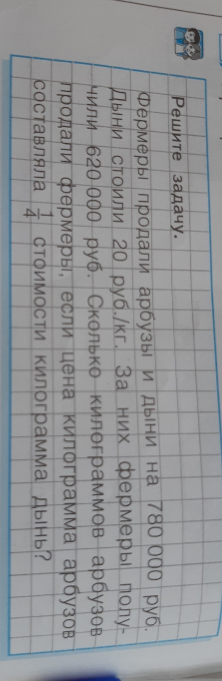 1)20:4=5(руб)-1 кг арбуза