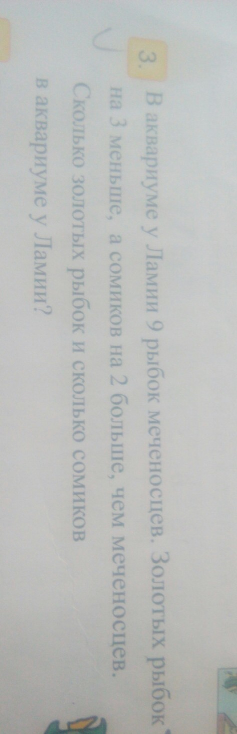 1)9-3=6(р.) золотых рыбок.