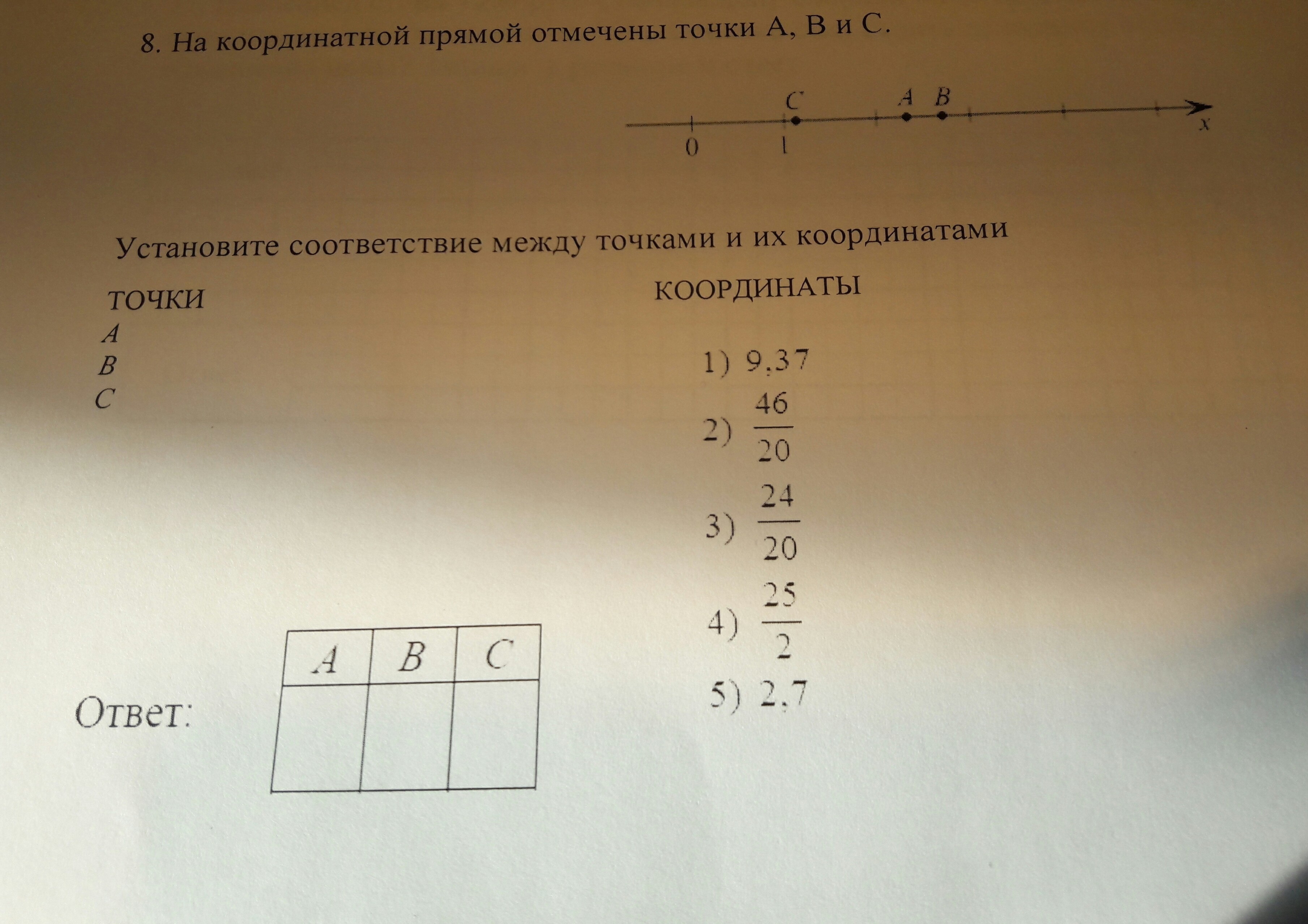 установите соответствие между точками и их координатами точки A B C координаты 1)9.37