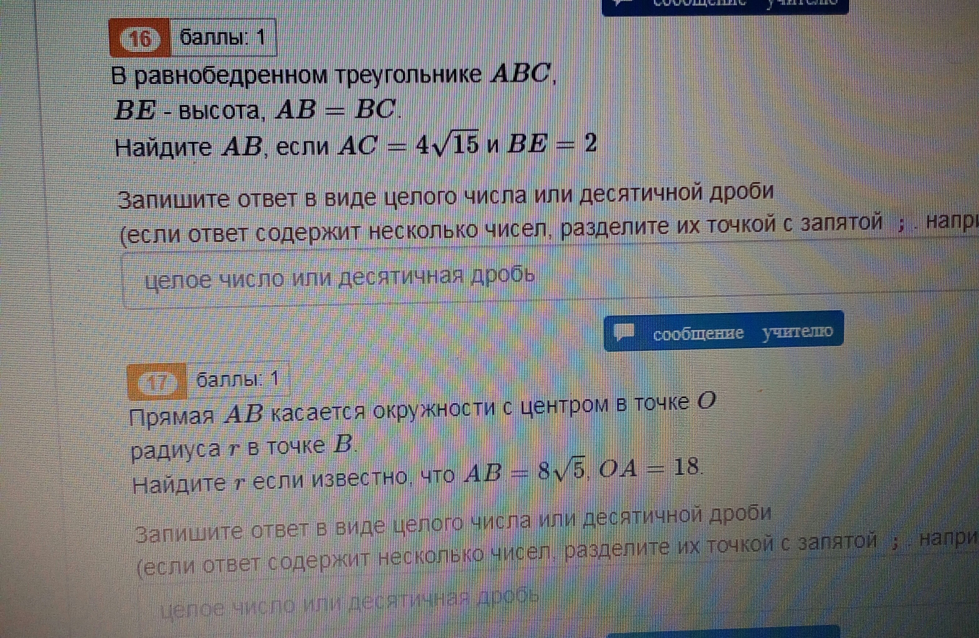 1 задача АЕ=1/2 АС=2√15