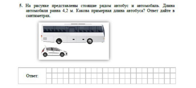 На рисунке представлены стоящие рядом автомобиль и автобус.Длина автомобиля равна 4,2 м. Какова примерная длина автобуса?ответ дайте в сантиметрах.