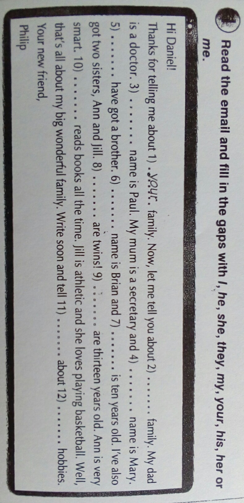 2) my 3) his 4) her 5) I 6) his 7) he 8) they 9) they 10) she 11) me 12) your