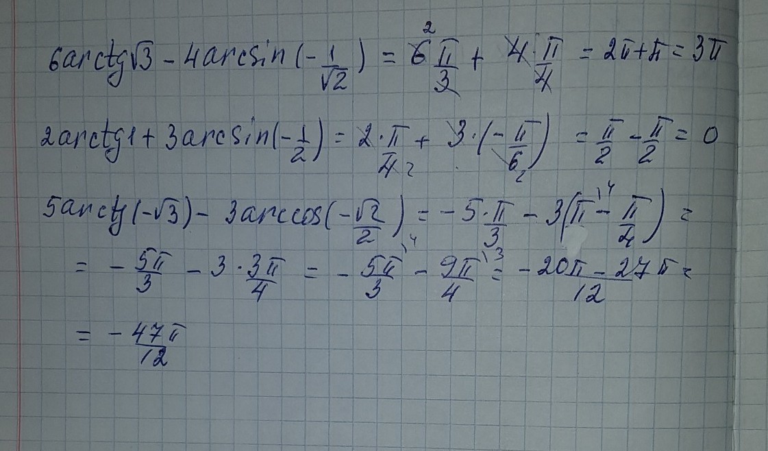 6 arctg√3 - 4 arcsin (-1/√ 2)