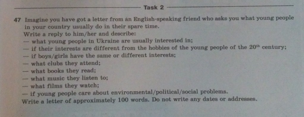 Нужно написать письмо по плану на фото другу про молодых людей в моей стране(Украина).