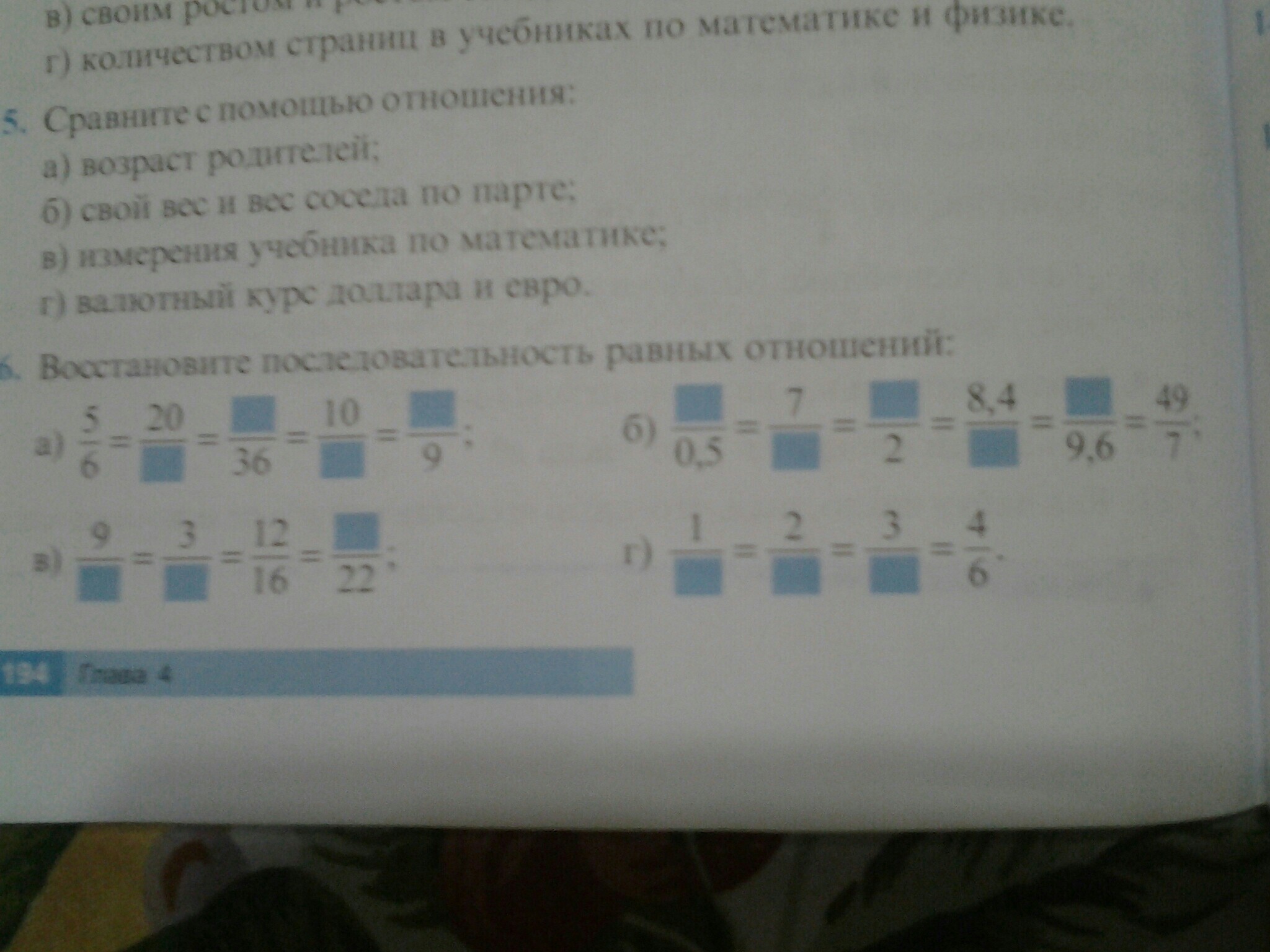 а) 5/6 = 20/24 = 30/36 = 10/12 = 7,5/9